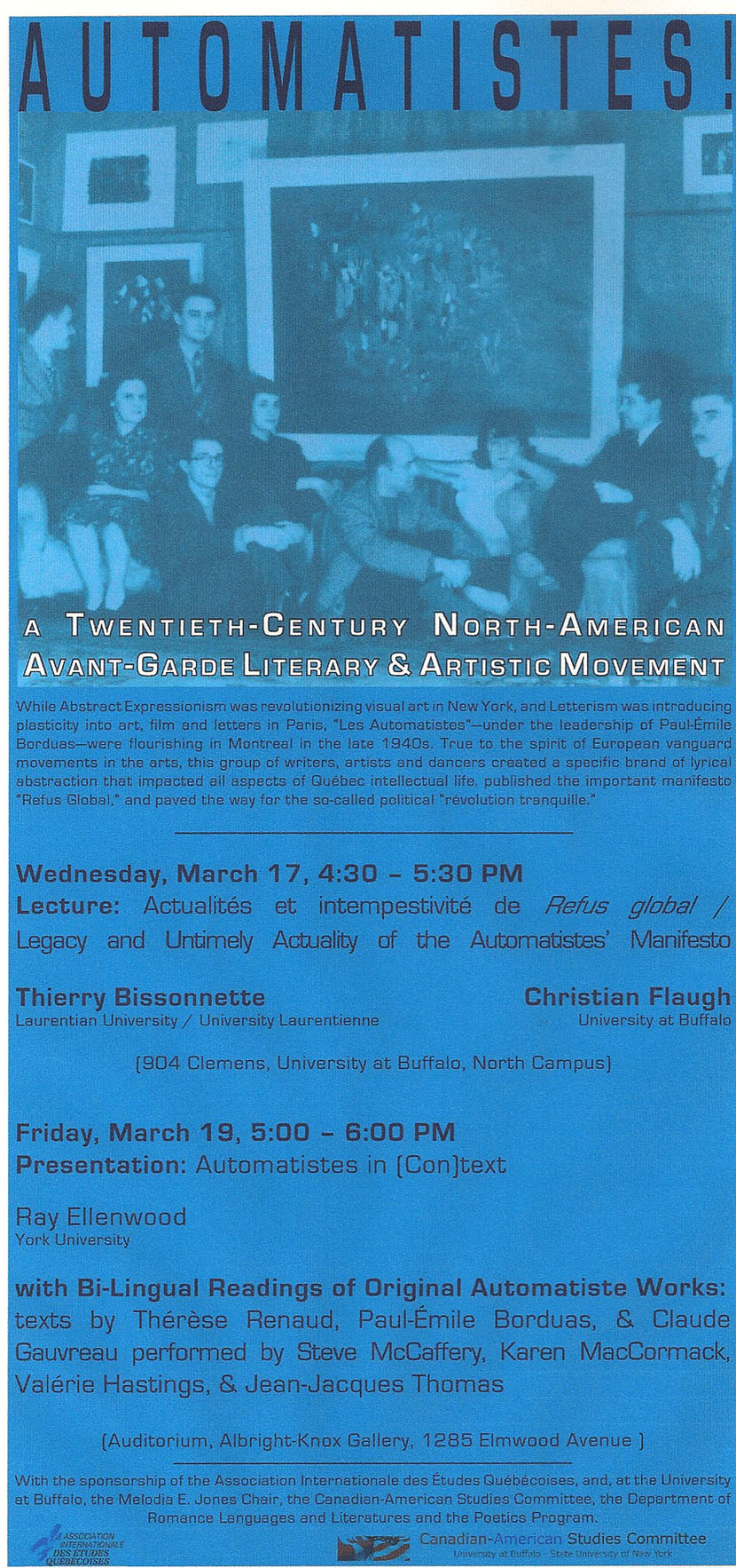 Friday, March 19, Auditorium, 5:00 – 6:00. “Automatistes