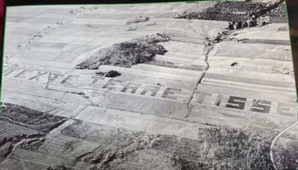 arpents en largeur, puisque chaque lettre mesure 91 mètres delongpar 76 mètres de large:gigantesque performance deland art orchestrée par Jean-Yves Fréchette, enregistrée dansLelivredesrecordsGuinness,visibleuniquementà vol d’oiseau ou via un intermédiaire, comme une photo.