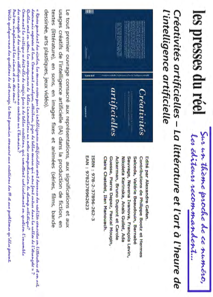 tyranniesournoise,agressiveoupassive,expliciteou maquillée,estredoutablecar,souventignoréepar l’utilisateur,elleimposeuneco-signatureinsidieuseà toute fiction (à toute expression artistique et à tout marché artistique)outentatived’inventaired’information.Qui perdetquigagnefaceàcetautoritarisme?Quityrannise qui? S’agit-ildu «wokisme »qui s’impose sur les réseaux sociaux oubien, plus confusément, de la classe vectorielle qui dessine une «vérité»opportuniste calquée sur ses propresbesoinsdictésparlescirconstances?Nousavons mis àdécouvert ce qui résulte lorsqu’un texte gouverné par unecontraintechoisiesansinfluence numérique setrouve modifiéeparunalgorithmepréexistant.Enoutre,ces textesrévèlentquelamanipulationdesdiscoursetdes images sous la férule deBig Data entraine la mise en place d’unensemblemarquéidéologiquementmaislaquelle? Danslaréalisationdetoutefiction,detoutspot publicitaire,detoutechroniqued’information,la distributiondesactantsbaséesurdescritèresdesexe,de race,d’inclinaisonsexuelle,d’originegéographique,de particularismelinguistique,porteenelleundiscours d’escorte apparemment exclu, mais néanmoins facilement réintégrédansl’interprétationdel’ensembleoffertaux lecteurs.trices, auditeurs.trices, ou spectateurs.trices.