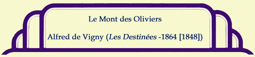 III Ainsi le divin Fils parlait au divin Père. Il se prosterne encor, il attend, il espère, Mais il renonce et dit: "Que votre volonté Soit faite et non la mienne, et pour l'éternité." Une terreur profonde, une angoisse infinie Redoublent sa torture et sa lente agonie. Il regarde longtemps, longtemps cherche sans voir. Comme un marbre de deuil tout le ciel était noir; La Terre, sans clartés, sans astre et sans aurore, Et sans clartés de l'âme ainsi qu'elle est encore, Frémissait. — Dans le bois il entendit des pas, Et puis il vit rôder la torche de Judas.